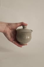 handmade on the pottery wheel from gray speckled stoneware.