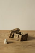 a small ceramic box carved by hand using the traditional kurinuki technique. the form is slowly hollowed out from a solid block of clay, giving each piece its own unique character and texture.